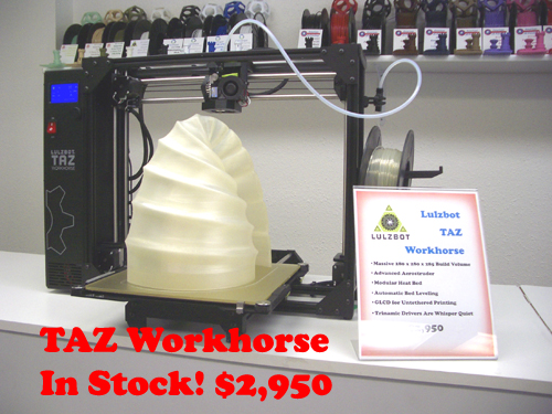 Laybrick 3mm Natural TPU 1.75 & 2.85mm PVA 1.75mm Natural Aquatek 2.85mm Natural Protopasta Stainless Steel 1.75 & 2.85mm Protopasta Carbon Fiber PETg 1.75mm ProtoPasta Conductive 2.85mm Colorfabb Copper 1.75 & 2.85mm Colorfabb Bronze 1.75 & 2.85mm Colorfabb Brass 1.75 & 2.85mm Carbon Fiber Polyamide 1.75 & 2.85mm Equipment - In Stock, take one home today!: Lulzbot TAZ Workhorse $2,950 Sense 3D Scanners $499 Makerbot Replicator+ $2,099 Lulzbot TAZ Pro $4,950 Ask about our education discounts! Blowout Prices on Used Equipment! 1/2 Price from list! Z-Morph Personal Fabricator $999 Lulzbot Mini 2 $750 ![]() |